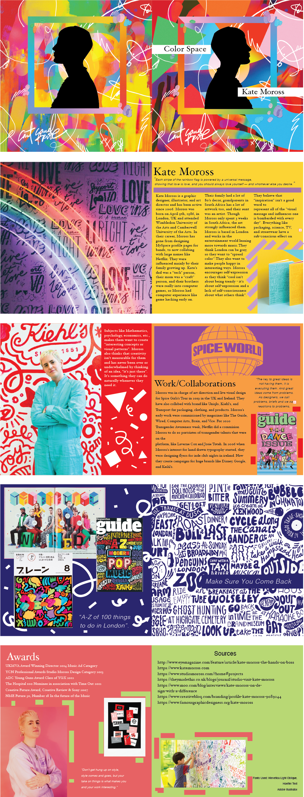 I created a set of promo materials for a Kate Moross exhibition. This set includes a promo poster, a booklet of the designer, and a ticket for the event. The designs are in reference to the artist as a person, and their work and style.